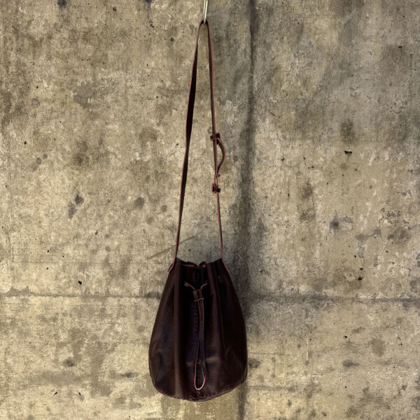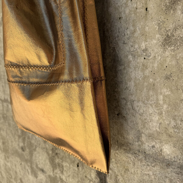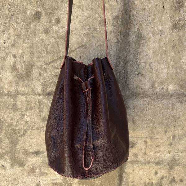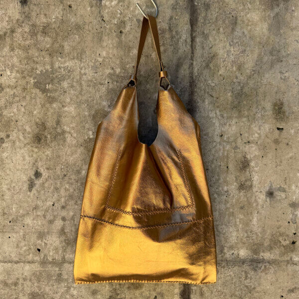 Bolsa pequena em couro macio upcycled (reaproveitamento), silhueta com “dobras”, fluída, atemporal.