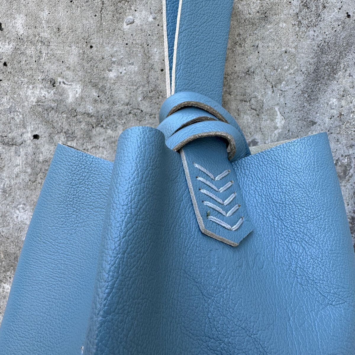 Bolsa pequena em couro macio upcycled (reaproveitamento) e couro de pirarucu, silhueta simplificada, fluída, atemporal.