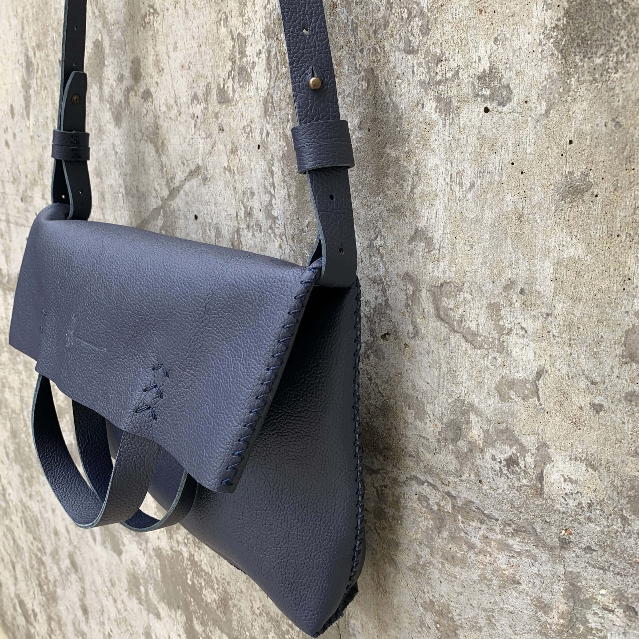 Bolsa média em couro macio upcycled (reaproveitamento), silhueta simplificada, fluída, atemporal.
