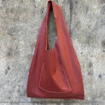 Bolsa média em couro macio upcycled (reaproveitamento), silhueta simplificada, fluída, atemporal.