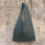 Bolsa média em couro macio upcycled (reaproveitamento), silhueta simplificada, fluída, atemporal.