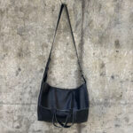 Bolsa grande em couro macio upcycled (reaproveitamento), silhueta simplificada, fluída, atemporal.